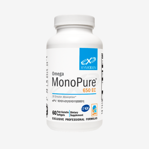 Omega MonoPure® 650 EC features natural enzymatically enhanced MaxSimil® monoglyceride fish oil that has a three times greater EPA/DHA absorption rate than an equivalent dose of ethyl ester fish oil. This translates to less fish oil in a smaller softgel for easy swallowing. This IFOS five-star certified fish oil outperforms other fish oils through MaxSimil patented lipid absorption enhancement technology (PLATform).*